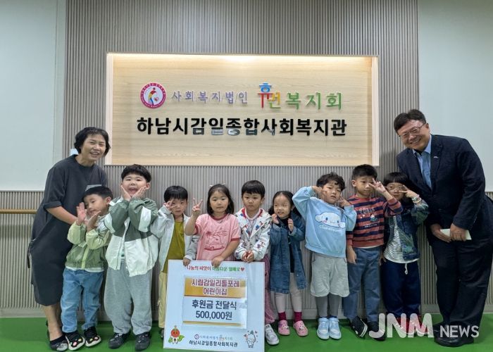 제이앤엠뉴스 | 시립감일리틀포레어린이집은 지난 10월 14일 하남시감일종합사회복지관(사회복지법인 휴먼복지회 운영)에 후원금을 전달했다.
