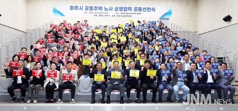 제이앤엠뉴스 | 아파트 경비원, 미화원 등 공동주택 노동자들의 초단기 계약 관행을 근절하기 위해 경기도와 파주시, 지난 17일 파주시 운정 다누림 노인복지관에서 ‘공동주택 노동자 상생 협력 선언식’을 개최했다.