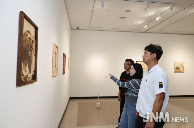 제이앤엠뉴스 | 무주군이 다양한 전시회를 열어 가을 방문객들을 손짓하고 있다. 무주최북미술관에서는 오는 10월 30일까지 “빛과 나무의 대화-무주in 인두화 展”이 개최된다.