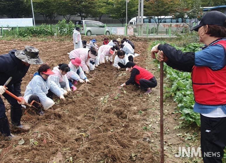 제이앤엠뉴스 | 오산시 대원1동 통장협의회는 지난 20일 관내 유휴 부지를 활용해 조성한 텃밭에서 ‘사랑의 이웃돕기 고구마 수확행사’를 개최했다고 밝혔다.
