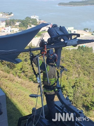 제이앤엠뉴스 | 진도소방서는 10월 20일 명량해상케이블카 진도스테이션에서 삭도시설 민관합동 구조훈련을 실시했다. 이번 훈련은 전국적으로 노후화가 진행 중인 관광용 삭도설비와 최근 증가하는 설치 현황에 대응하기 위해 마련됐다.