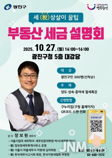 제이앤엠뉴스 | 광진구는 10월 27일 오후 2시 광진구청 대강당에서 구민을 대상으로 ‘알기 쉬운 부동산 세금 설명회’를 개최한다.