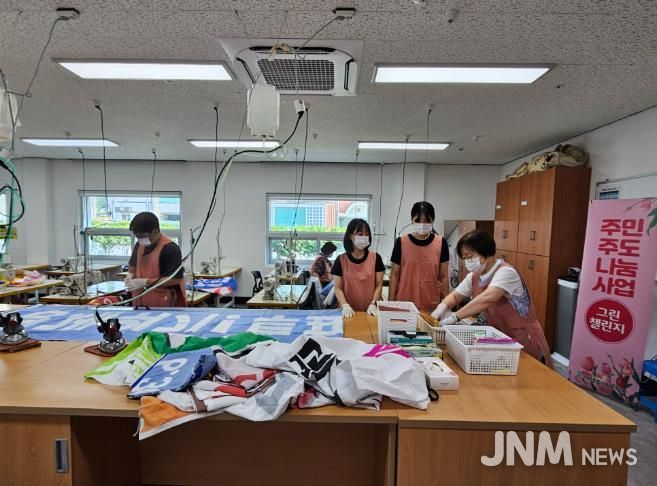 제이앤엠뉴스 | 서부종합사회복지관은 20일 지역주민들의 재봉기술 재능기부로 지난 대선 홍보용 폐현수막을 활용하여 마대자루 158개를 제작하여 울주군시설관리공단에 전달했다고 밝혔다.