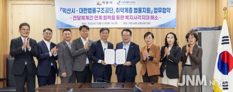 제이앤엠뉴스 | 익산시는 21일 시청 소회의실에서 대한법률구조공단과 '취약계층 법률 지원 업무협약'을 체결했다.