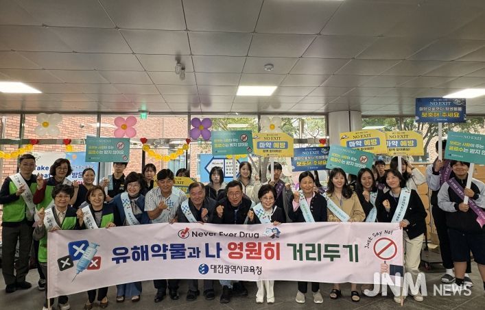 제이앤엠뉴스 | 대전시교육청은 10월 21일 대전노은고등학교에서 대전시교육청이 주관하는 ‘하굣길 마약 예방 캠페인’을 유관 기관(마약퇴치운동본부, 유성구중독관리통합지원센터)과 함께 실시했다고 밝혔다.