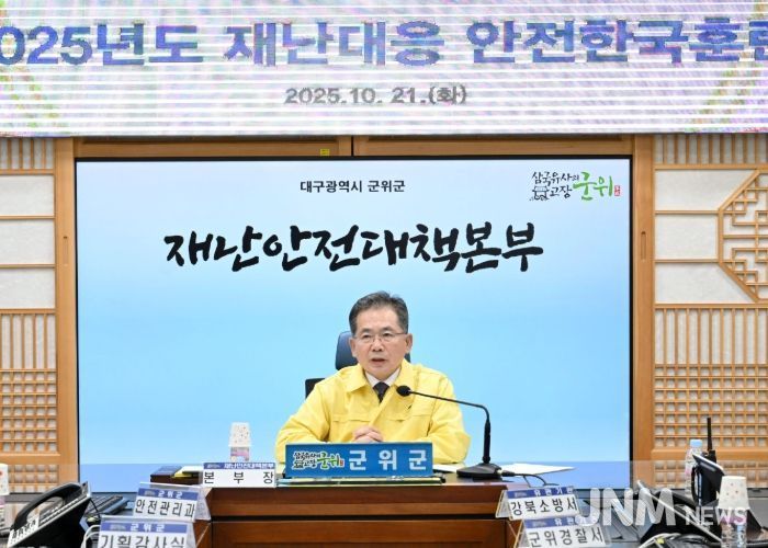 제이앤엠뉴스 | 대구시 군위군은 10월21일 김진열 군수 주재로 군민안전을 위한 풍수해 재난 대응 2025년 안전한국훈련을 실시했다.