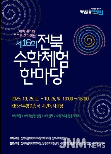 제이앤엠뉴스 | 전북특별자치도교육청과학교육원은 오는 25~26일 KBS전주방송총국 시민녹지광장에서 ‘제16회 전북수학체험한마당’을 개최한다고 22일 밝혔다.