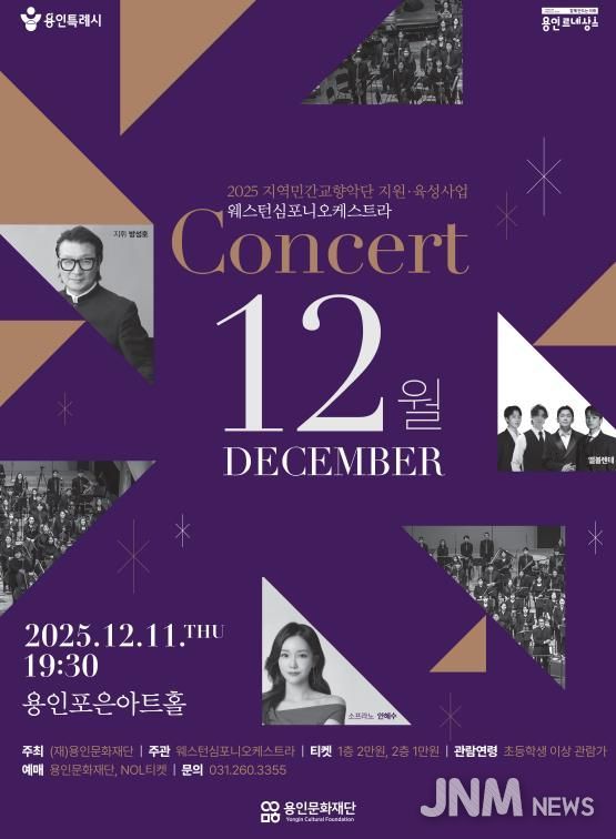 제이앤엠뉴스 | 용인문화재단은 오는 12월 11일 오후 7시 30분, 용인포은아트홀에서 웨스턴심포니오케스트라 '콘서트 ‘12월’' 공연을 개최한다.