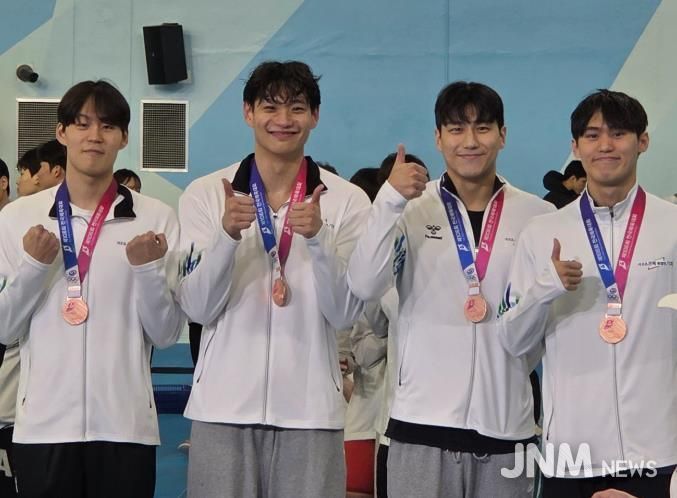 또한 김영현 선수는 자유형 1500m에서 은메달, 자유형 400m에서 동메달을 차지하며 장거리 종목 강자로서 안정된 경기력을 선보였으며, 고성민·김민석·김영현·윤인서 선수가 함께 출전한 계영 800m 단체전에서도 동메달을 획득해 팀워크의 진가를 발휘했다.
