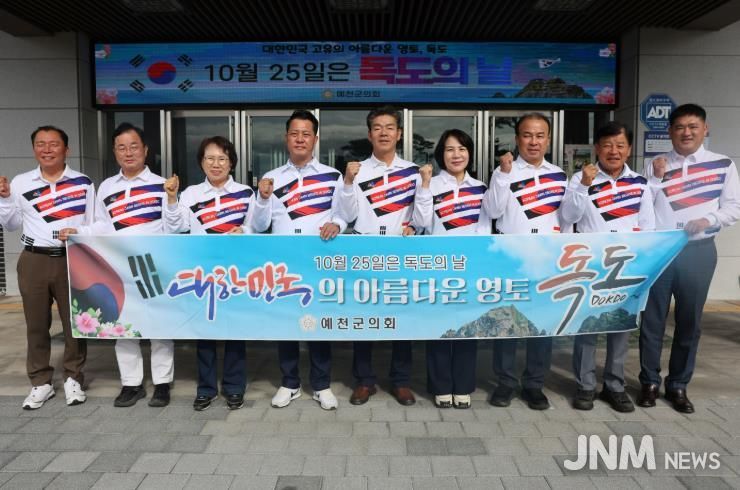 제이앤엠뉴스 | 예천군의회는 24일, 독도의 날을 맞아 군의회 전정에서 의원과 의회사무과 직원이 참가한 가운데 독도사랑 캠페인을 가졌다.