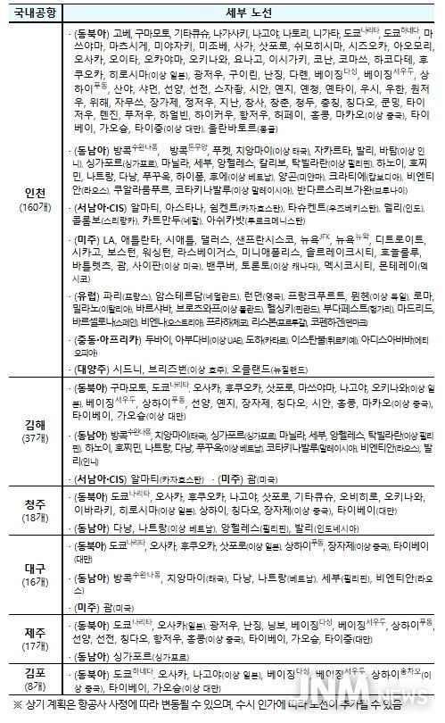 한편, 부산-알마티(카자흐스탄), 대구-치앙마이(태국) 및 대구-비엔티안(라오스) 등 지방공항을 중심으로 신규취항하여 노선도 다변화된다.