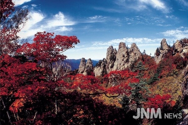 설악산은 대한민국에서 가장 먼저 단풍이 시작되는 곳으로, 웅장한 바위와 어우러진 오색 단풍이 동양화처럼 아름답다. 가을 산행을 즐기는 이들에게 언제나 1순위로 꼽히는 명소다.