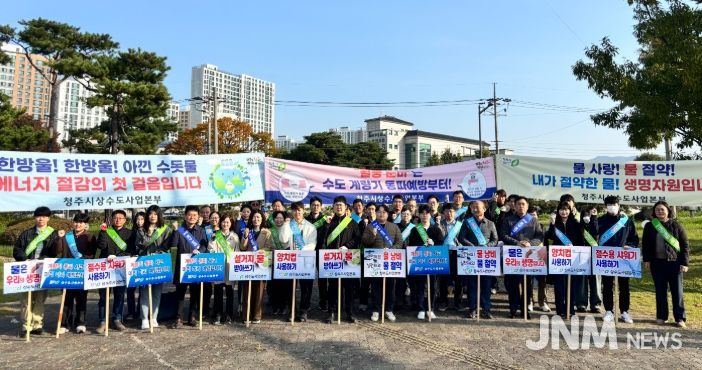 제이앤엠뉴스 | 청주시 상수도사업본부는 30일 상당구 지북사거리에서 직원 60여명이 참석한 가운데 탄소중립 및 물 절약 실천 캠페인을 실시했다.