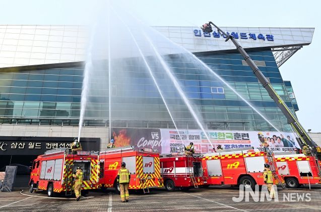 제이앤엠뉴스 | 부평구는 30일 삼산월드체육관에서 재난 대응 역량 강화를 위한 지진·화재 등 복합 재난 대비 ‘2025년 안전한국훈련’을 실시했다.