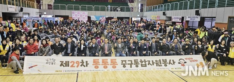 제이앤엠뉴스 | (사)울산중구자원봉사센터(이사장 박민호)와 울산중구전문자원봉사단협의회(회장 박시대)가 11월 2일 오전 9시 울산고등학교 체육관에서 ‘제29차 통·통·통 중구 통합자원봉사’활동을 펼쳤다.