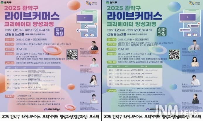 제이앤엠뉴스 | 전국 최초 청년친화도시인 관악구가 청년층을 대상으로 이커머스 분야의 핵심 기술을 배울 수 있는 ‘라이브커머스 크리에이터(쇼플루언서) 양성 과정’을 오는 11월 12일부터 신림동 쓰리룸(관악청년문화공간)에서 운영한다.