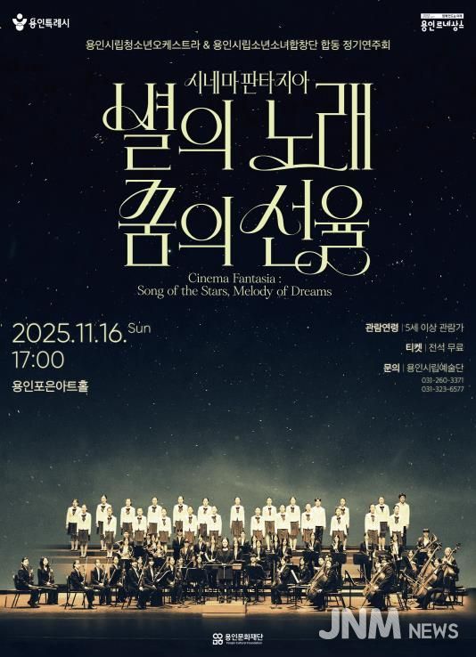 제이앤엠뉴스 | (재)용인문화재단은 오는 11월 16일 용인포은아트홀에서 용인시립청소년오케스트라와 용인시립소년소녀합창단 합동 정기연주회 '시네마 판타지아 : 별의 노래, 꿈의 선율'을 개최한다.