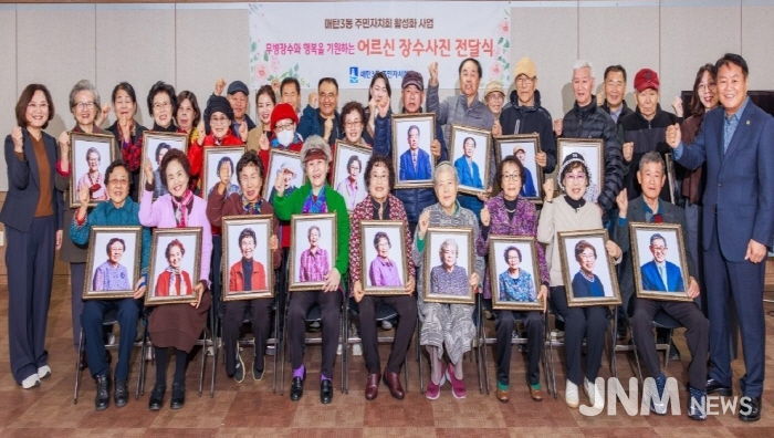 제이앤엠뉴스 | 수원시 영통구 매탄3동 주민자치회는 지난 10월 31일 매탄3동 행정복지센터에서 ‘어르신 장수사진 전달식’행사를 진행했다.