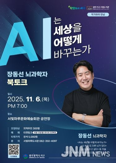 제이앤엠뉴스 | 광주광역시 서구는 오는 6일 오후 7시 서빛마루문화예술회관에서 대한민국 대표 뇌과학자인 장동선 박사를 초청해 ‘특별 북토크’를 개최한다. 이번 북토크는 ‘AI는 세상을 어떻게 바꾸는가’라는 주제로 1부 강연과 2부 대담 프로그램으로 진행된다.