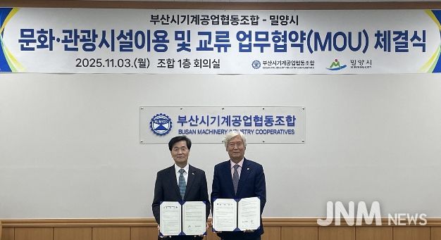 제이앤엠뉴스 | 경남 밀양시와 부산시기계공업협동조합은 3일 부산 강서구에 위치한 부산시기계공업협동조합 회의실에서 문화·관광시설 이용 및 교류 업무 협약을 체결했다고 밝혔다.