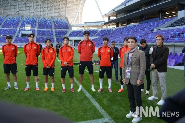 제이앤엠뉴스 | 김진태 강원특별자치도지사(구단주)는 11월 3일 오후 3시, 일본 히로시마 에디온 피스 윙 스타디움을 방문해 아시아챔피언스리그 조별리그 원정경기를 앞두고 훈련 중인 강원FC 선수단을 격려하고 응원의 메시지를 전했다.