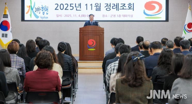 제이앤엠뉴스 | 합천군은 지난 4일 군청 대회의실에서 공직자 100여 명이 참석한 가운데 2025년 11월 정례조회를 개최했다.