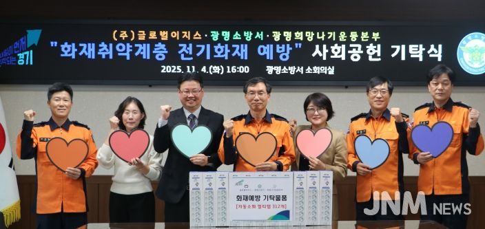 이번 기탁식은 겨울철 소방안전대책의 일환으로 추진되는 ‘화재취약계층 전기화재 예방사업’의 일환으로 마련됐다. 이날 글로벌이지스는 전기 과부하로 인한 화재를 초기에 차단할 수 있는 자동소화멀티탭(엘리펀탭) 312개를 광명희망나기운동본부를 통해 기탁했으며, 기탁 물품은 겨울철 화재위험이 높은 취약계층 가정에 순차적으로 전달될 예정이다.