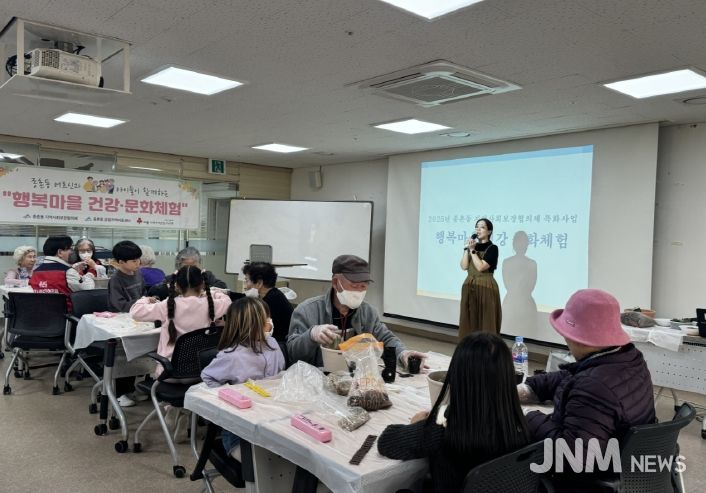 행복마을 건강·문화체험은 종촌동지역사회보장협의체가 종촌공립지역아동센터 아동들과 함께 65세 이상 어르신을 대상으로 건강 교육과 치매 예방체험 프로그램을 진행하는 사업이다.