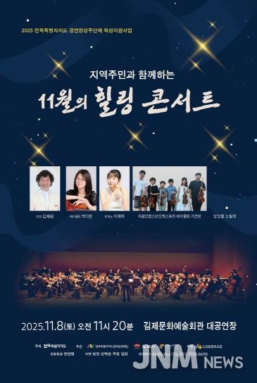 제이앤엠뉴스 | 단순한 공연을 넘어 음악을 통해 세대와 지역이 함께 성장하고 소통하는 '지역주민과 함께하는 11월의 힐링 콘서트'가 오는 8일 오전 11시 20분 김제문화예술회관 대공연장에서 펼쳐진다.