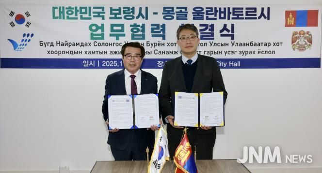 제이앤엠뉴스 | 보령시는 7일 몽골 울란바토르시와 상호 발전적인 협력관계 증진을 위한 ‘보령시–울란바토르시 우호협력 양해각서(MOU)’를 체결했다.