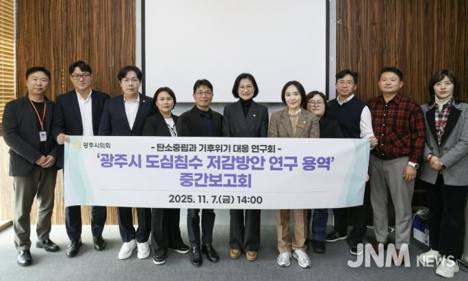 제이앤엠뉴스 | 광주시의회 의원연구단체인‘탄소중립과 기후위기 대응 연구회’(대표 주임록 의원)는 11월 7일 오후 2시, 시의회 3층 대회의실에서 '광주시 도심침수 저감방안 연구 용역' 중간보고회를 개최했다.