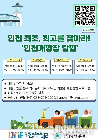 제이앤엠뉴스 | (재)인천중구문화재단(이사장 김정헌)은 인천의 역사와 문화유산을 현장에서 체험하며 배우는 2025년 인천개항박물관 교육프로그램 '인천 최초, 최고를 찾아라! 인천개항장 탐험'을 운영한다고 10일 밝혔다.