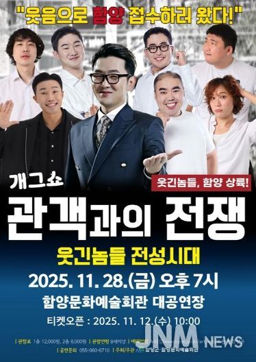 제이앤엠뉴스 | 함양문화예술회관은 오는 11월 28일 오후 7시 대공연장에서 개그쇼 ‘관객과의 전쟁’ 공연을 진행한다고 밝혔다.