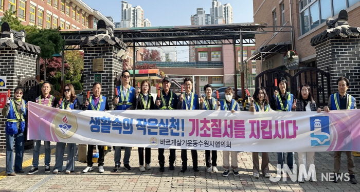 제이앤엠뉴스 | 수원시 영통구 바르게살기운동협의회는 지난 11월 7일, 매탄동 산남초등학교 앞에서 ‘기초질서 확립 캠페인’을 실시했다. 이는 일상 속에서 질서와 배려를 실천하는 시민 문화를 조성하고, 더불어 깨끗하고 안전한 생활환경을 만들어가기 위한 취지다.