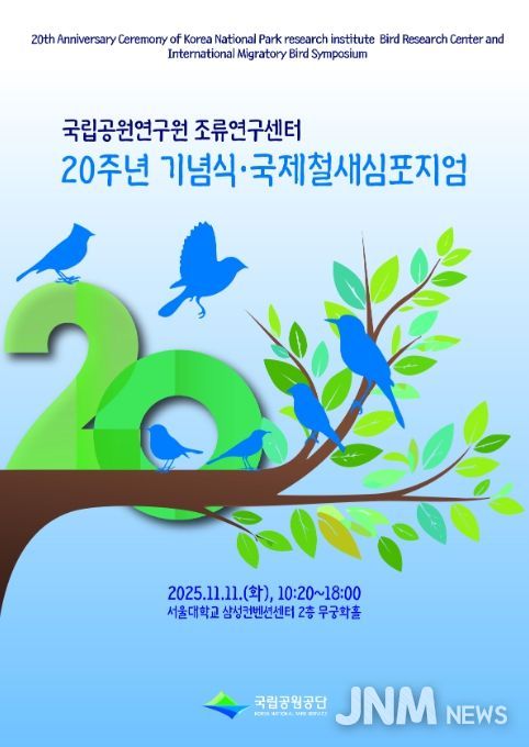 제이앤엠뉴스 | 기후에너지환경부 산하 국립공원공단은 국립공원연구원 조류연구센터 설립 20주년을 맞아, 11월 11일 서울대학교 삼성컨벤션센터(서울 관악구 소재)에서 기념식 및 국제철새 토론회(심포지엄)를 개최한다.