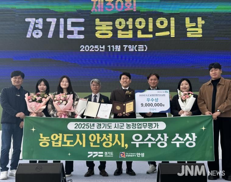 제이앤엠뉴스 | 안성시가 2025년 경기도 시·군 농정업무 평가에서 우수 기관으로 선정되어 ‘우수상’을 수상했다. 지난해 ‘장려상’을 받은데 이어 올해는 한 단계 도약한 성과를 거두며, 지역 농정 추진 역량을 다시 한번 입증했다.