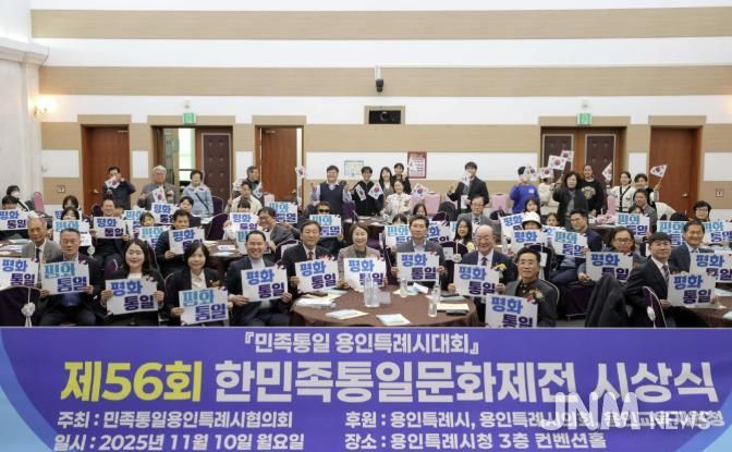 제이앤엠뉴스 | 용인특례시는 10일 시청 컨벤션홀에서 민족통일 용인특례시협의회 주관으로 ‘민족통일 용인특례시대회와 제56회 한민족통일문화제전 시상식’이 열렸다고 밝혔다.