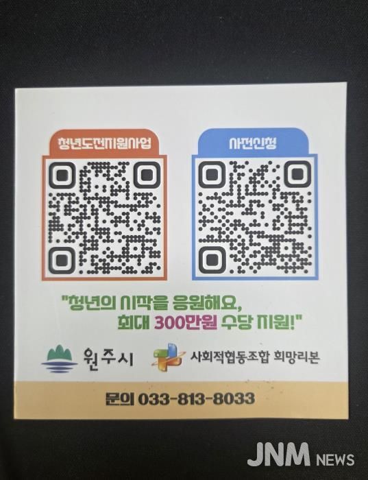 엄병국 원주시 기업지원일자리과장은 “지역 청년들을 응원하는 데 뜻을 함께해 주신 자영업자분들께 감사드린다”라며, “앞으로도 청년이 건강하게 성장하고 지역사회가 더욱 활기를 띨 수 있도록 원주시가 적극 지원하겠다”라고 말했다.