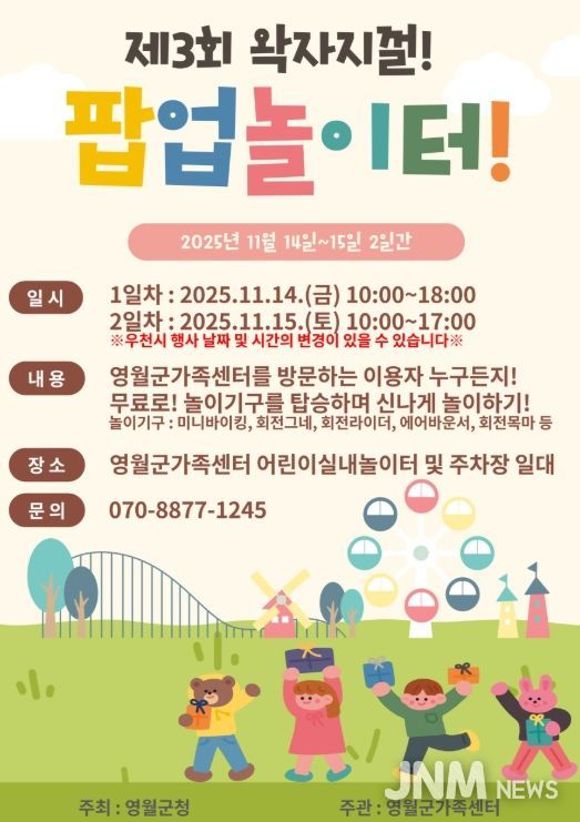 제이앤엠뉴스 | 영월군 가족센터는 오는 11월 14, 15일 ‘제3회 왁자지껄 팝업놀이터’를 운영한다.