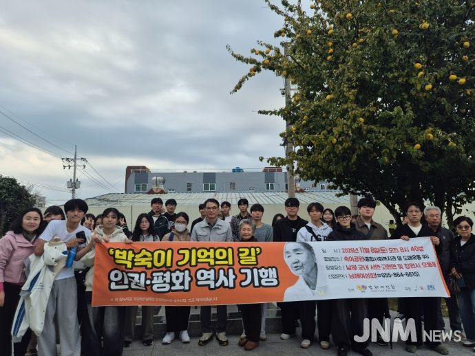 제이앤엠뉴스 | 남해여성회는 지난 8일 오전 남해군민 37명이 참여한 가운데 남해군 숙이공원에서 ‘박숙이 기억의 길 인권·평화 역사 기행’을 진행했다.