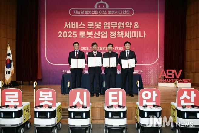 제이앤엠뉴스 | 안산시는 지난 10일 (재)경기테크노파크 다목적실에서 관내 기업들과 ‘서비스로봇 업무협약·안산시 로봇산업 정책세미나’를 개최하고, 국내 최초로 캠퍼스형 자율주행 배달로봇 ‘개미’를 도입한다고 11일 밝혔다.