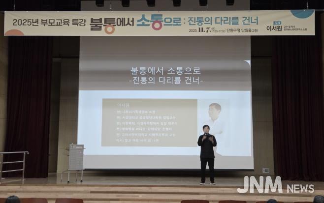 제이앤엠뉴스 | 안산시는 단원구청 단원홀에서 ‘불통에서 소통으로: 진통의 다리를 건너’를 주제로 부모교육 특강을 진행했다고 11일 밝혔다.