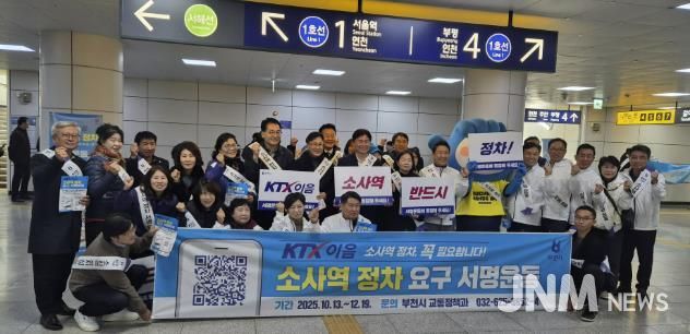 이번 캠페인은 KTX-이음의 소사역 정차 필요성에 대한 시민 공감대 확산을 목표로 진행됐으며, 조용익 부천시장과 홍기화 소사구청장, 주민자치위원, 시민 등 50여 명이 참여해 적극적인 홍보를 펼쳤다.