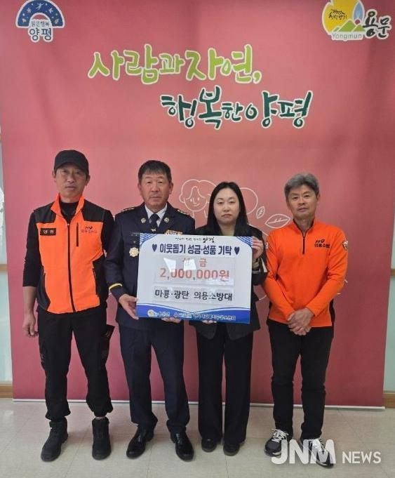제이앤엠뉴스 | 양평군 용문면은 용문면 마룡리·광탄리 의용소방대가 지난 10일 이웃 돕기 성금 200만 원을 전달하며, 매년 이어오고 있는 기부활동을 올해도 꾸준히 이어갔다고 밝혔다.