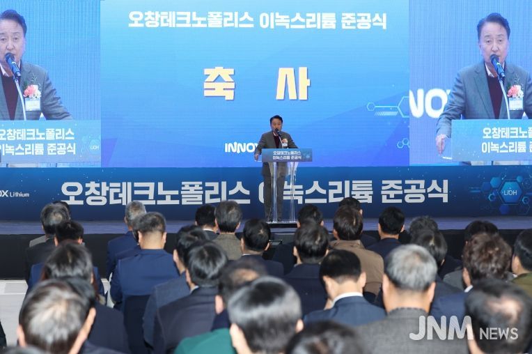 제이앤엠뉴스 | ㈜이녹스리튬은 11일 청주 오창테크노폴리스 산업단지에서 이녹스리튬 오창공장 준공식을 개최했다. 이날 준공식에는 김경훈 이녹스리튬 대표이사, 장경호 이녹스 회장, 김영환 충북도지사, 신병대 청주부시장 등 150여 명이 참석했다.