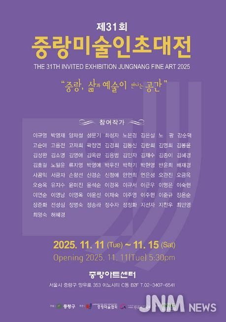 제이앤엠뉴스 | 시민들의 문화예술 향유의 시간을 제공하고 작가는 최신작 위주로 독창적 미술 작품을 공개하는 '2025 제31회 중랑미술인초대전'은 주최 서울 중랑구, 주관 중랑미술협회로 11월 11일 ~ 11월 15까지 중랑아트센터에서 "중랑, 삶과 예술이 만나는 공간" 타이틀로 그룹전이 진행 중에 있다.