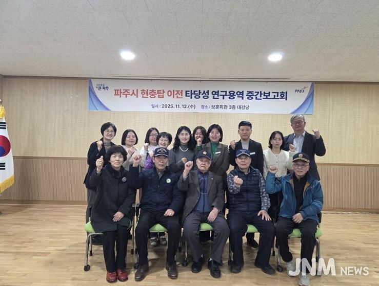 제이앤엠뉴스 | 파주시는 지난 12일 파주시보훈회관에서 보훈단체 회원 및 보훈단체장 등이 참석한 가운데, ‘현충탑 이전 타당성 연구용역 중간보고회’를 개최하고 현충탑 이전의 필요성과 후보지 평가 방법에 대해 논의했다고 밝혔다.