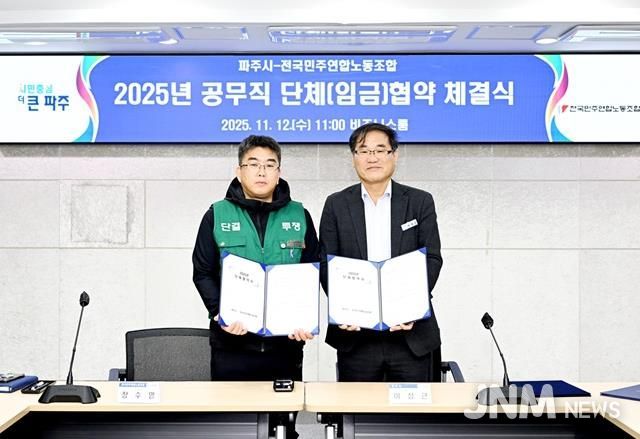 제이앤엠뉴스 | 파주시는 전국민주연합노동조합 파주시지부(공무직 근로자의 교섭대표)와 지난 12일 녩년 단체·임금협약’을 체결했다고 밝혔다.