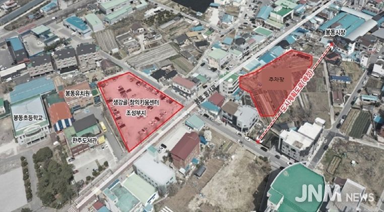 제이앤엠뉴스 | 완주군이 봉동시장과 맞닿은 장기리 일원에 85면 규모의 공영주차장을 조성하며 봉동읍 도심 상권의 숨통을 틔우고 있다.