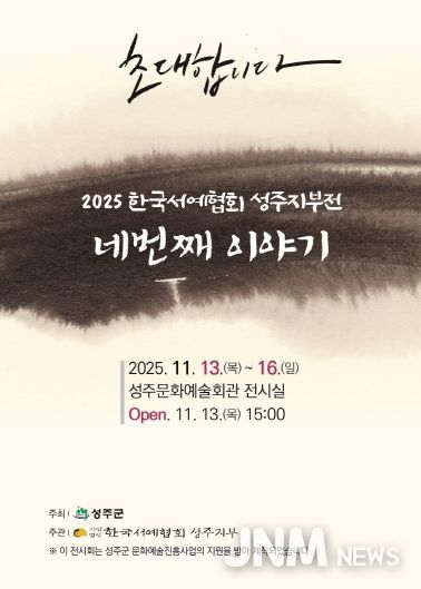 제이앤엠뉴스 | 지역 서예인들의 창작활동을 장려하고 군민의 문화예술 향유 기회를 확대하기 위한 한국서예협회 성주지부 회원전 '네번째 이야기'가 2025 문화예술진흥공모사업의 일환으로 11월 13일부터 16일까지 성주문화예술회관 성산홀(1층 전시실)에서 성황리에 개최됐다.